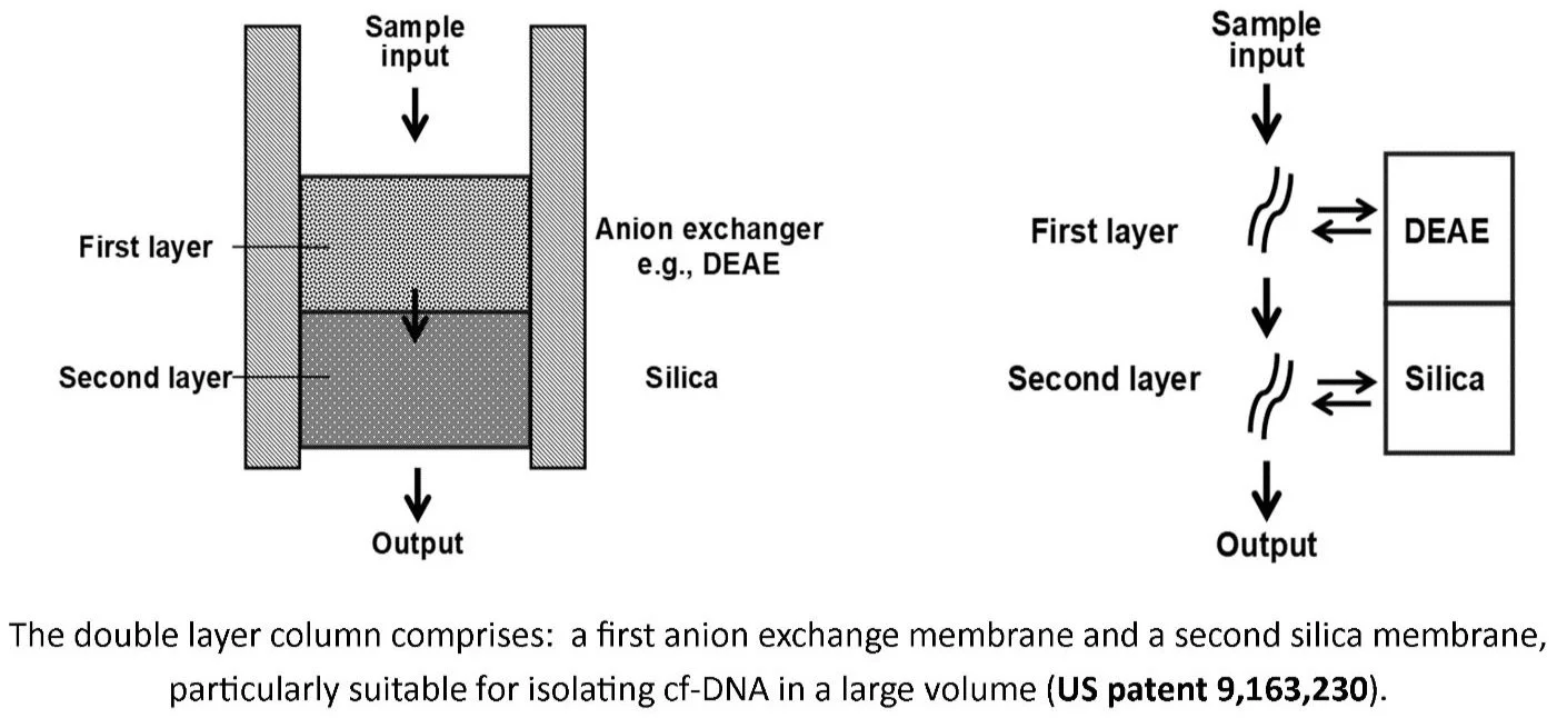 The new technology of Double-Layer Column is used to extract cf-DNA from plasma or urine.